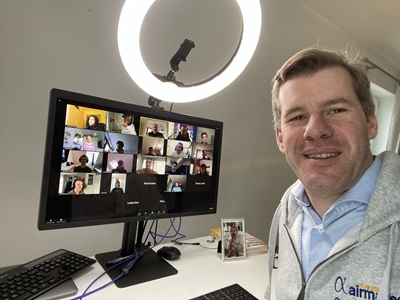 Alexander Kohnen in der Videokonferenz mit den Schülern aus der Q2
