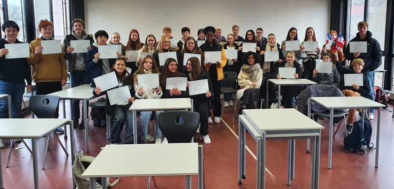 Das außergewöhnlich lange Warten auf die Erfolgsbescheinigungen schmälerte letztlich keine Freude: Heute wurde 42 Schülerinnen und Schülern des SMG die erfolgreiche Prüfungsteilnahme am internationalem Sprachdiplom DELF (Diplôme d'Etudes en Langue Française) durch eine Urkunde attestiert!